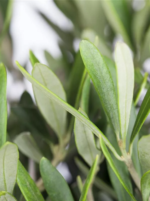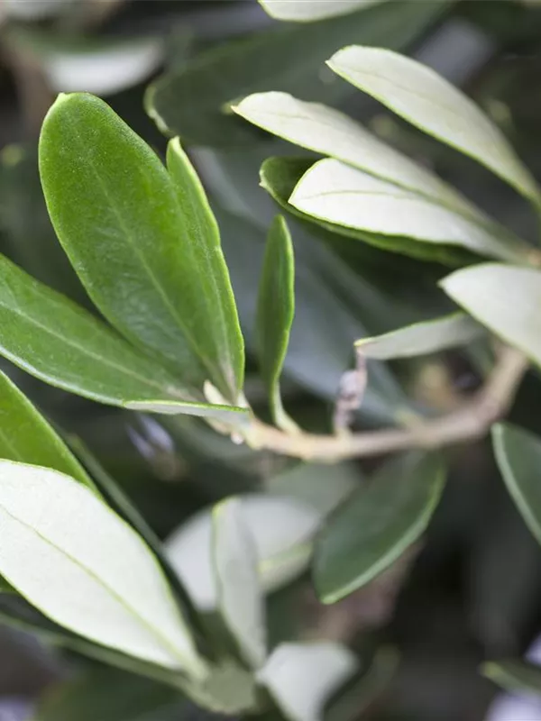 Die immergrünen Blätter des Olivenbaums sind grau-grün, lanzettlich.