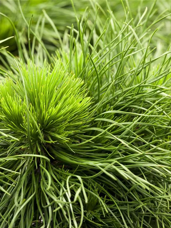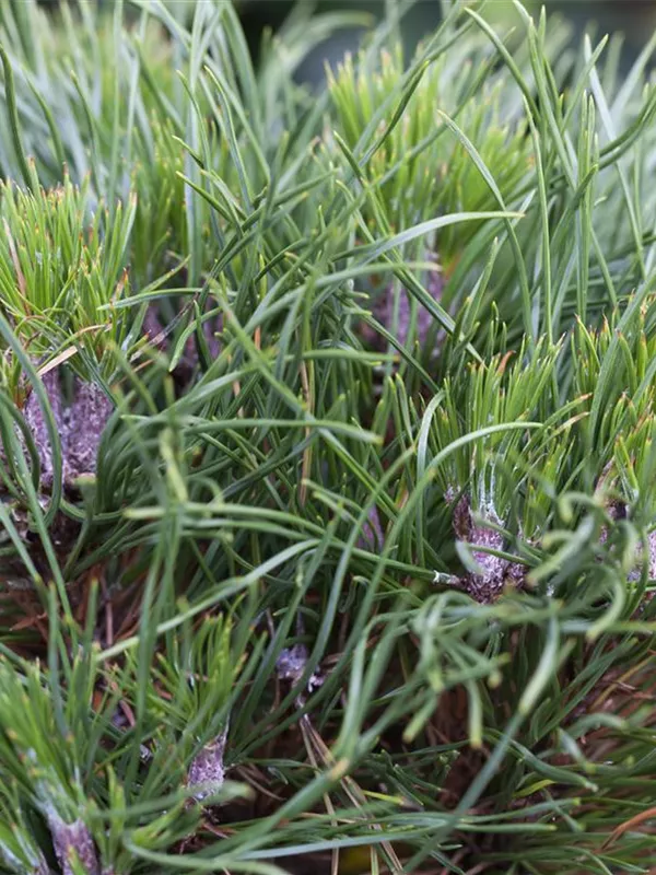 Die Berg-Kiefer 'Varella' ist immergrün. Ihre Nadeln sind blau-grün.