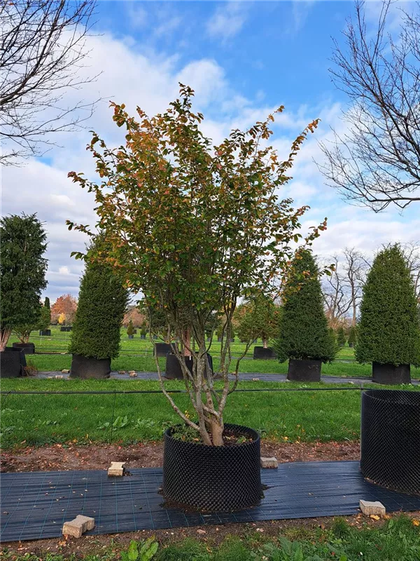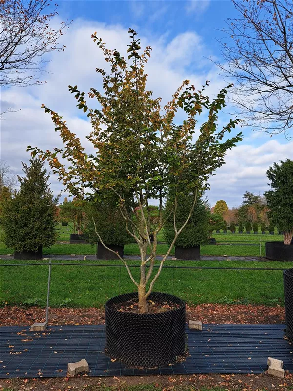 Eisenbaum ist ein breit und mehrstämmig wachsender Großstrauch. Er erreicht gewöhnlich eine Höhe von 6 - 10 m und wird ca. 5 - 10 m breit. In der Regel wächst er 20 - 25 cm pro Jahr.