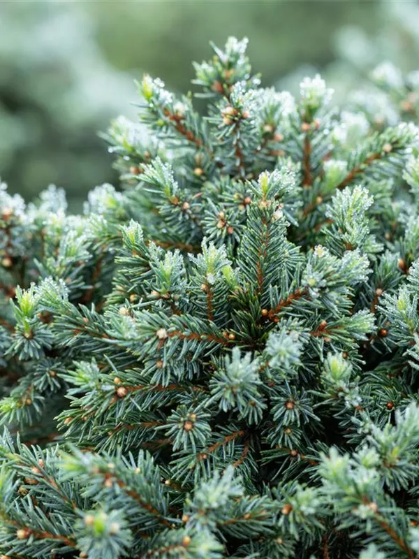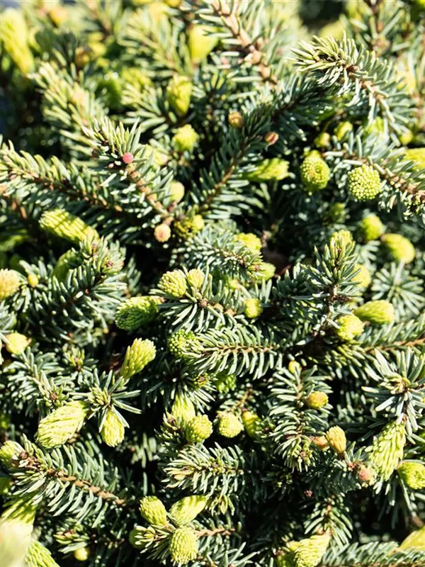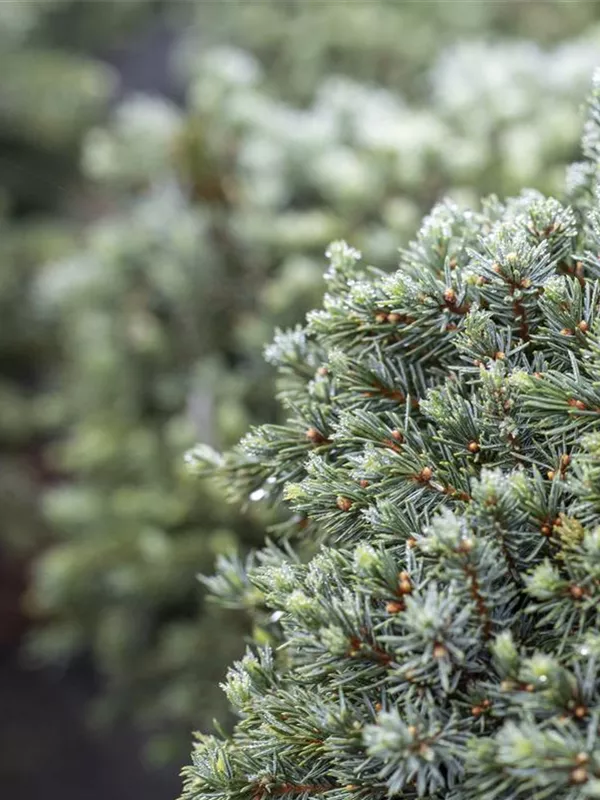 Die Blaue Igelfichte 'Echiniformis' ist immergrün. Ihre Nadeln sind blau-grün.
