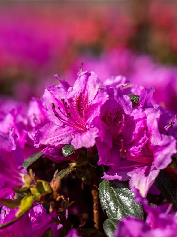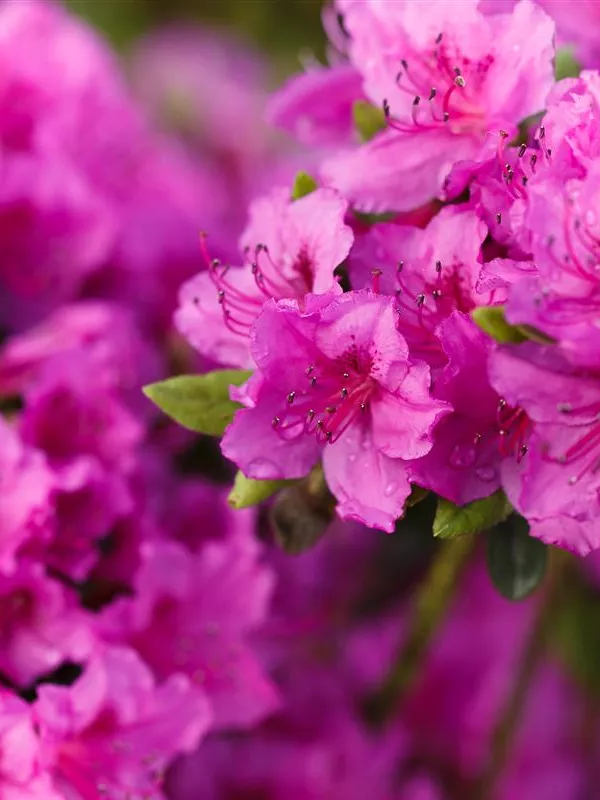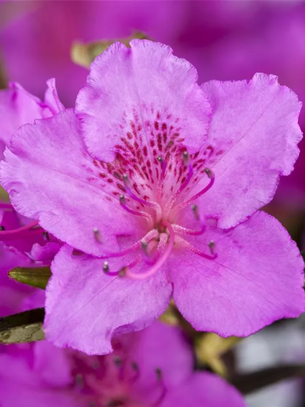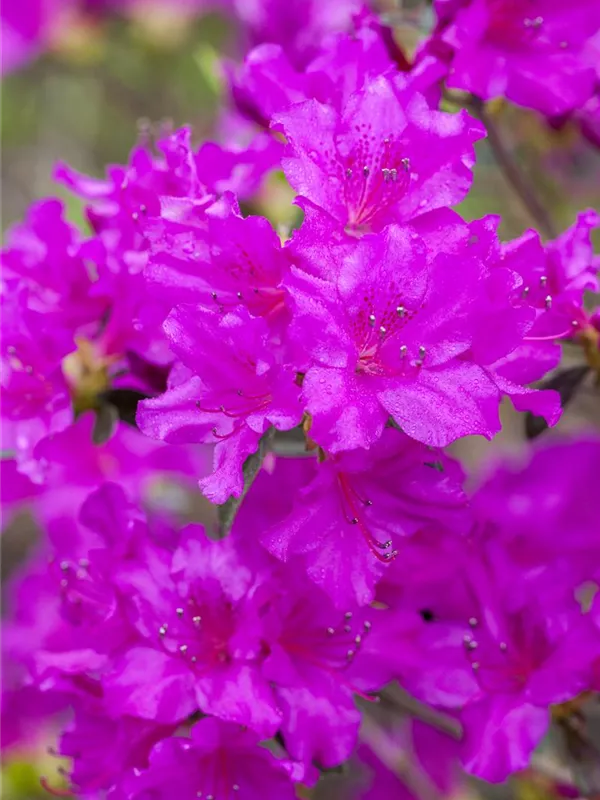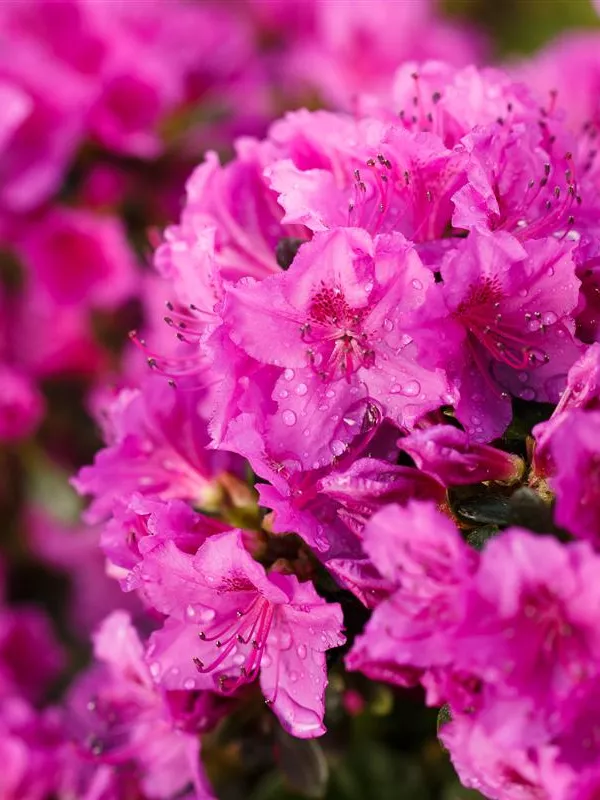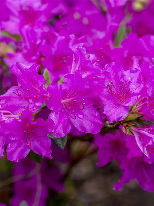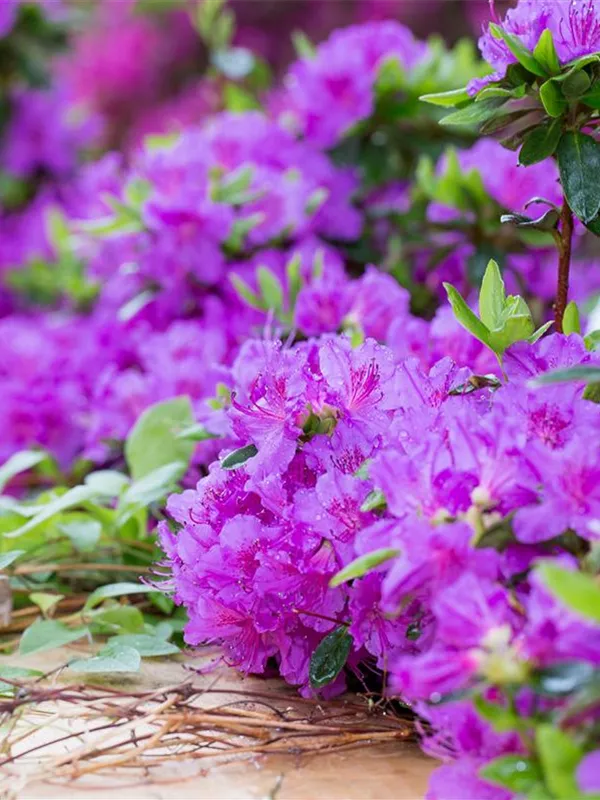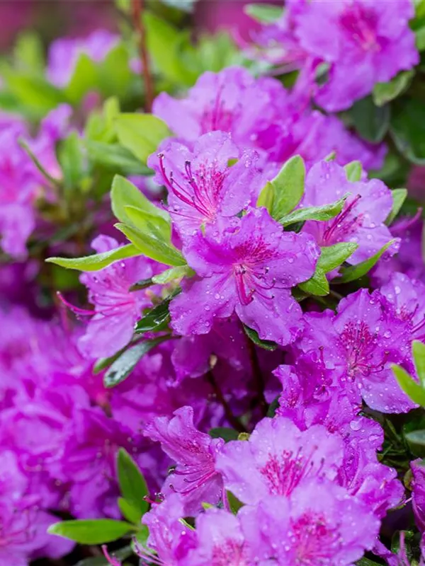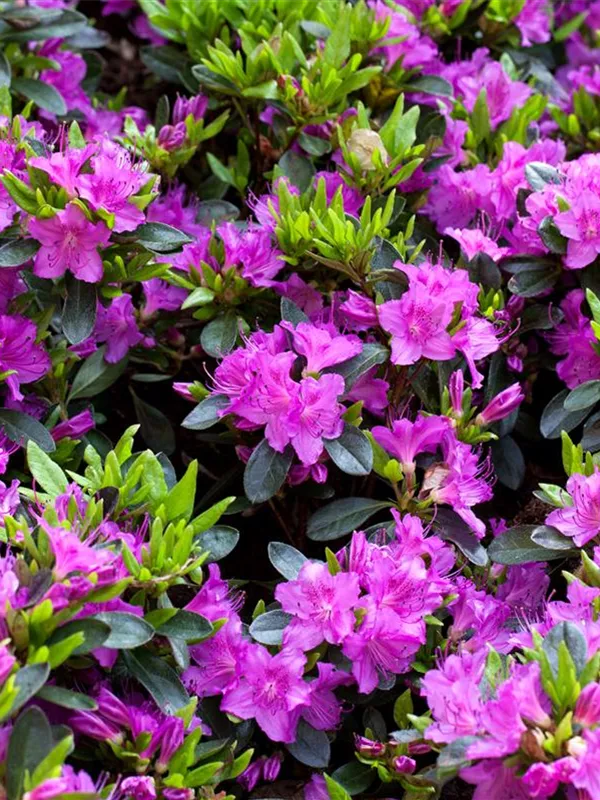 Die Japanische Azalee 'Königstein' (Rhododendron obtusum) bringt von Mitte Mai bis Ende Mai ein wahres Meer aus violetten Blüten hervor. Dieses breit, kompakt wachsende Gehölz erreicht gewöhnlich eine Höhe von 40 - 60 cm und eine Breite von 60 bis 80 cm. Ein halbschattiger (bis schattiger) Standort und ein durchlässiger, nährstoffreicher, saurer Boden schaffen optimale Bedingungen für ein gesundes Wachstum. Die Japanische Azalee 'Königstein' ist gut frostverträglich.