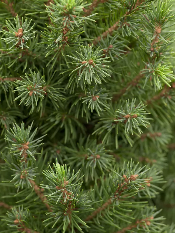 Die Zuckerhutfichte 'Conica Perfecta' ist immergrün. Ihre Nadeln sind blau-grün.