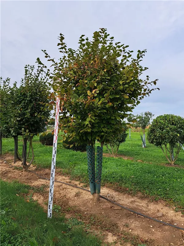 Die Hainbuche (Carpinus betulus) ein aufrechter, rundlicher Baum, der, je nach Sorte, Blüten in verschiedenen Farben hervorbringt. Ihre Rinde ist dunkelgrau, glatt. An einem sonnigen bis schattigen Standort mit durchlässigem, nährstoffreichem Boden erreicht sie gewöhnlich eine Höhe von ca. 20 m und wird ca. 12 m breit.