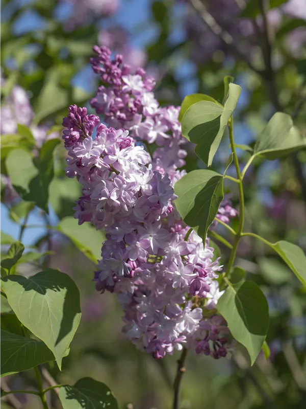 Die lilafarbenen, gefüllten Blüten des Edelflieder 'Michel Buchner' erscheinen in Rispen von Mai bis Juni. Diese werden etwa 12 - 15 cm groß und sind stark duftend.