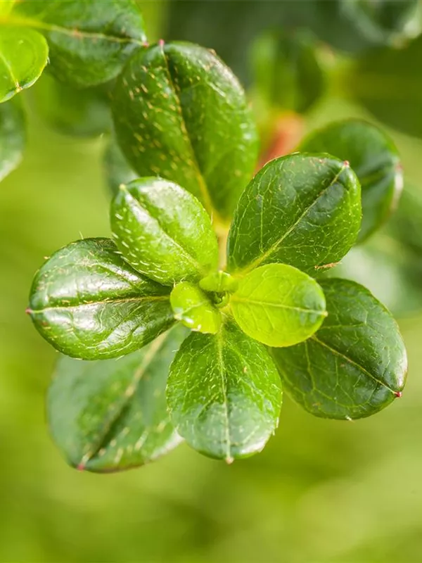 Die Japanische Azalee ist wintergrün und trägt dunkelgrüne, glänzende, lanzettliche, eiförmige Blätter.
