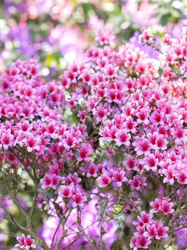 Die Japanische Azalee (Rhododendron obtusum) bringt von Mai bis Juni ein wahres Blütenmeer in verschiedenen Farben (je nach Sorte) hervor. Dieses aufrecht, gedrungen wachsende Gehölz erreicht gewöhnlich eine Höhe von 0,5 - 1,5 m und eine Breite von 0,5 bis 1,5 m. Ein halbschattiger (bis schattiger) Standort und ein durchlässiger, nährstoffreicher, saurer Boden schaffen optimale Bedingungen für ein gesundes Wachstum. Die Japanische Azalee ist gut frostverträglich.