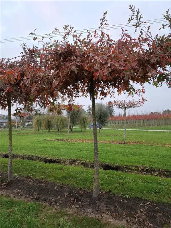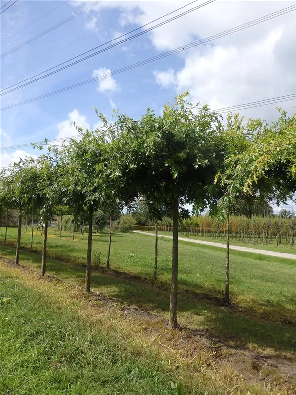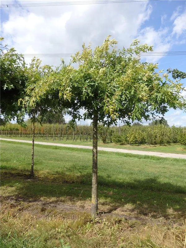 Die Sumpf-Eiche (Quercus palustris) ist ein kegelförmiger, lockerer Baum mit dekorativen, runden Früchten. Die Blüten erscheinen je nach Sorte in verschiedenen Farben.