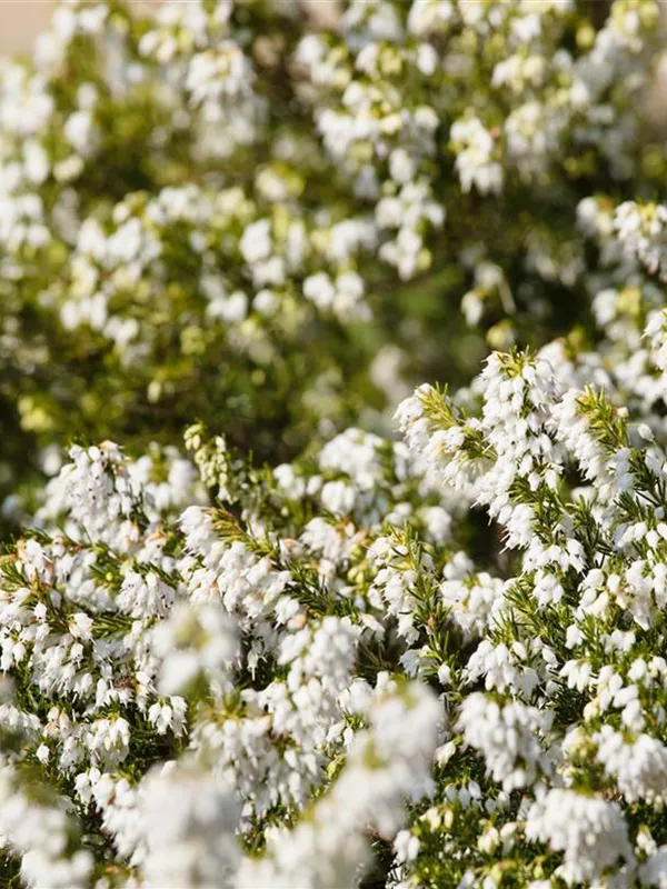 Die Schneeheide (Erica carnea) wird durch ihre unzähligen weißen Blüten jeden Garten verschönern. Gekonnt kombiniert mit anderen in Größe und Farbe passenden Pflanzen – in Kübeln oder Kästen, macht sie auch auf der Terrasse eine schöne Figur.