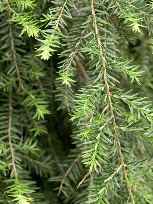 Die Triebe von Tsuga canadensis 'Pendula' sind braun-gelb.
