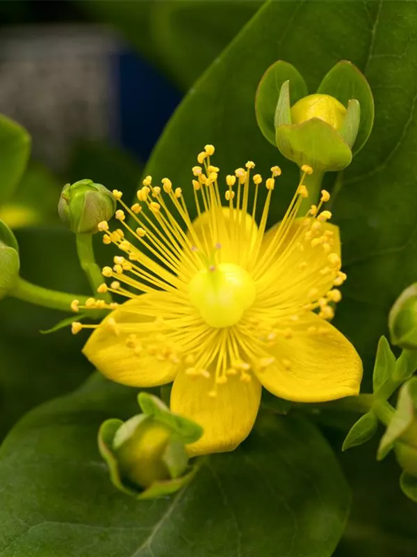 Das Gartenjahr wird bunt. Dafür sorgt Johanniskraut 'Magical' mit Leichtigkeit. Im Sommer sind es die leuchtend gelben Blüten, die das Auge erfüllen und im Herbst werden Sie sich an den roten Früchten nicht satt sehen können. Auch für eine Heckenbepflanzung ist dieser kompakte Strauch gut geeignet. Die Zweige sind ein beliebter Vasenschmuck, der besonders um die Weihnachtszeit stimmungsvolle Akzente setzt. Das Johanniskraut 'Magical' benötigt einen durchlässigen Gartenboden und gedeiht in Sonne und Halbschatten.