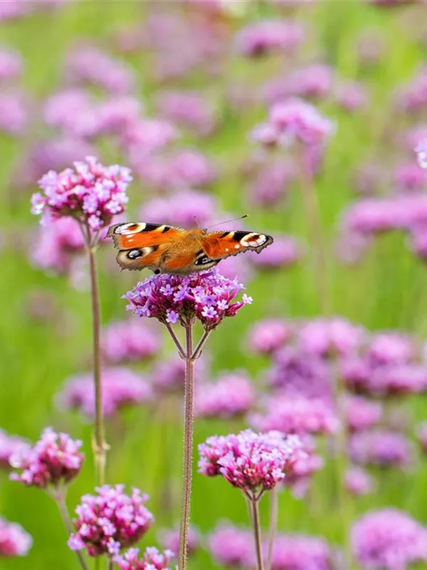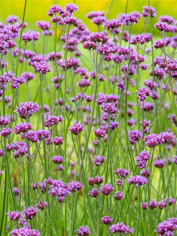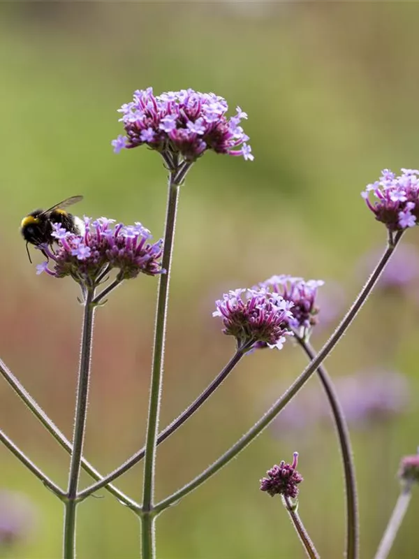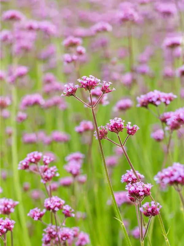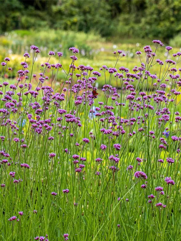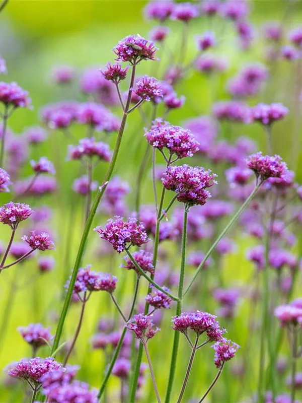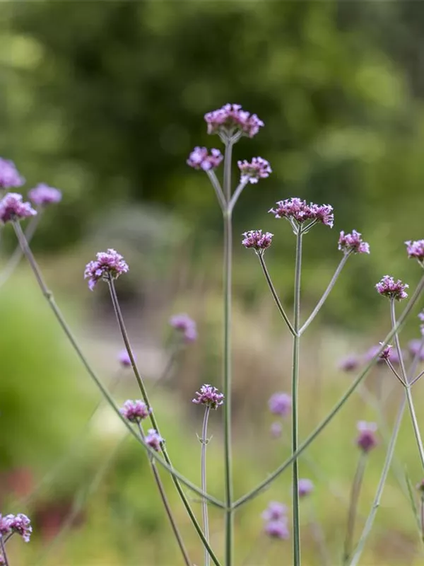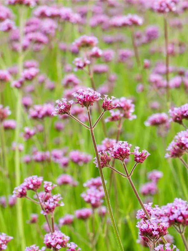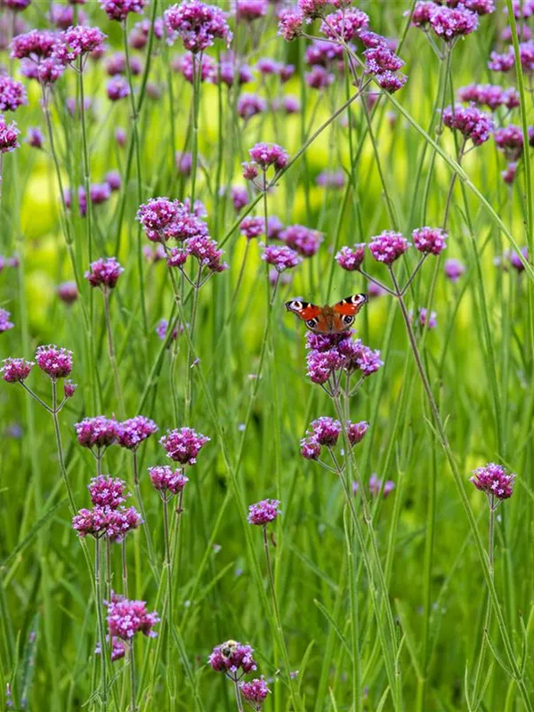 Das Eisenkraut (Verbena bonariensis) ist eine aufrechte wintergrüne Staude, die von Juli bis Oktober magentafarbene, in Dolden angeordnete Blüten bildet. An einem sonnigen Standort mit durchlässigem, nährstoffreichem Boden erreicht es gewöhnlich eine Höhe von ca. 1,5 m und wird ca. 40 cm breit.