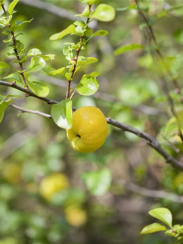 Die gelben Kernfrüchte verströmen einen angenehmen Duft. Die Kernfrüchte sind birnenförmig. Reifezeit ab September.