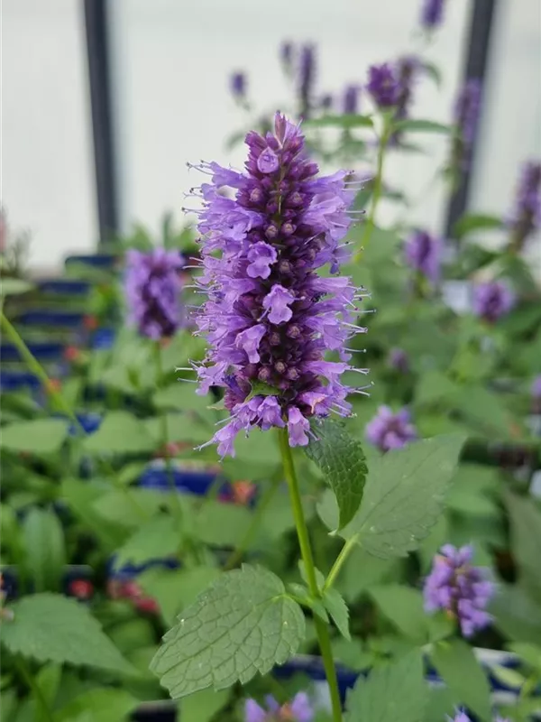 Agastache rugosa 'Black Adder'® bildet lippenförmige, in Ähren angeordnete, blauviolette Blüten ab Juli. Diese verströmen einen angenehmen Duft.