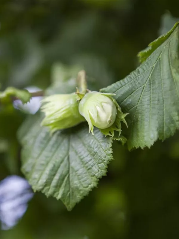 Corylus avellana 'Webbs Preisnuss' bildet braune Nüsse mit einem aromatischen, nussigen Geschmack. Reifezeit ab September.