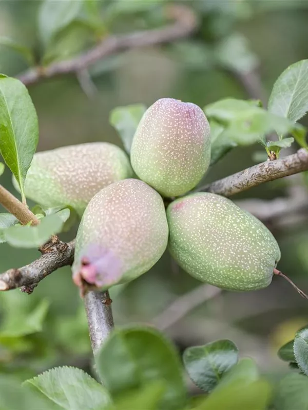 Besonders dekorativ sind die gelben, orangefarbenen, angenehm duftenden, birnenförmigen Früchte von Chaenomeles japonica. Diese erscheinen ab September.