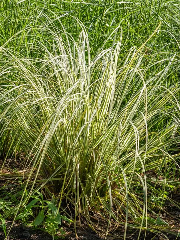 Hoher Blattschmuckwert. Die sommergrünen Blätter des Gestreiften Reitgrases 'Overdam' sind grün-weiß.