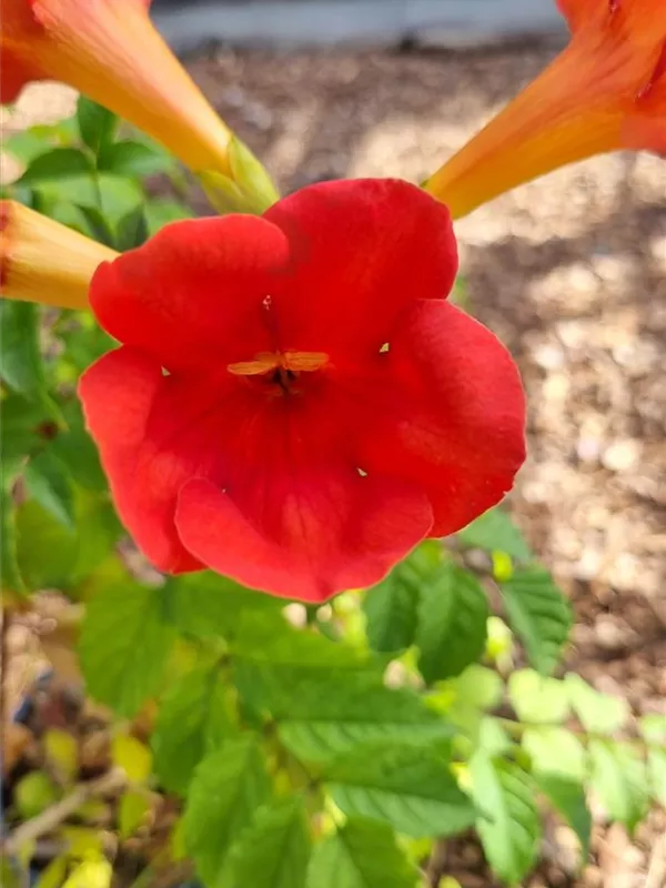 Die Große Kletter-Trompetenblume 'Mme Galen' weist eine gute Frosthärte auf.