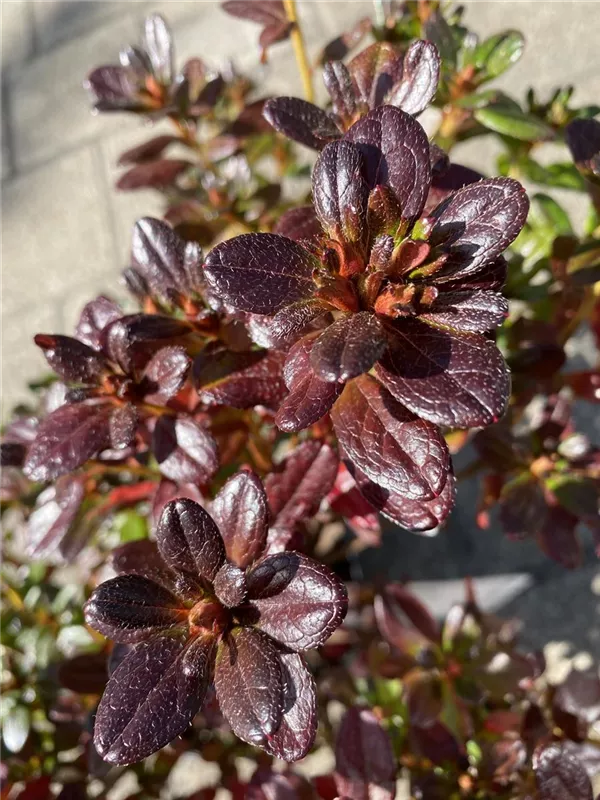 Die Japanische Azalee 'Muttertag' ist wintergrün und trägt dunkelgrüne, glänzende, eiförmige Blätter.