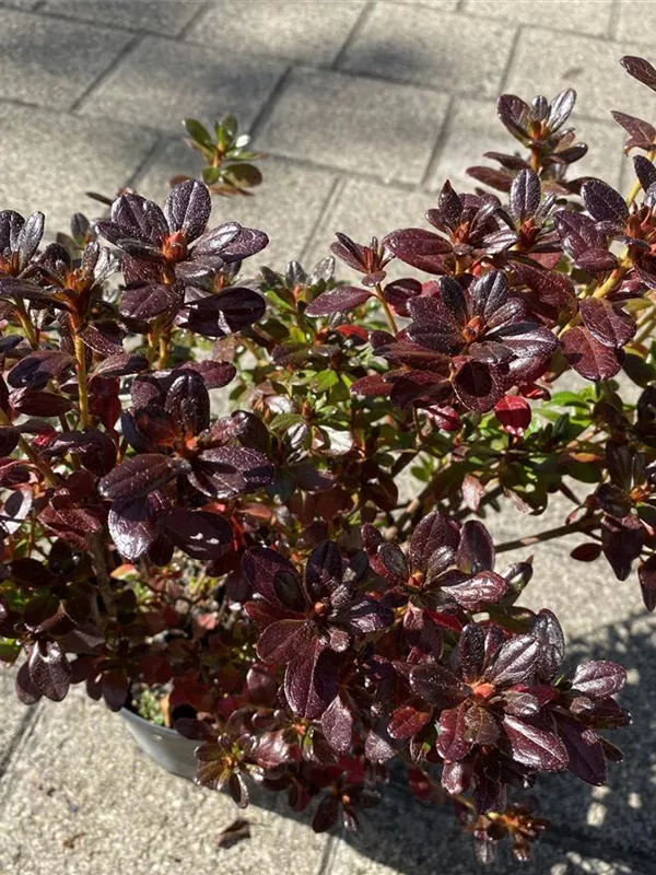 Die Japanische Azalee 'Muttertag' (Rhododendron obtusum) bringt im Mai ein wahres Meer aus karminroten Blüten hervor. Dieses buschig, breit, gedrungen wachsende Gehölz erreicht gewöhnlich eine Höhe von 60 - 80 cm und eine Breite von 0,8 bis 1 m. Ein halbschattiger (bis schattiger) Standort und ein durchlässiger, nährstoffreicher, saurer Boden schaffen optimale Bedingungen für ein gesundes Wachstum. Die Japanische Azalee 'Muttertag' ist gut frostverträglich.