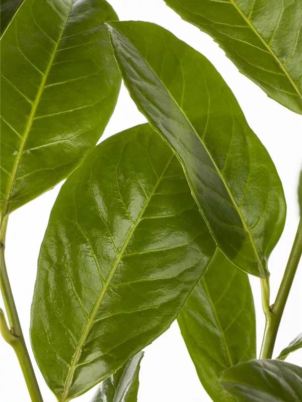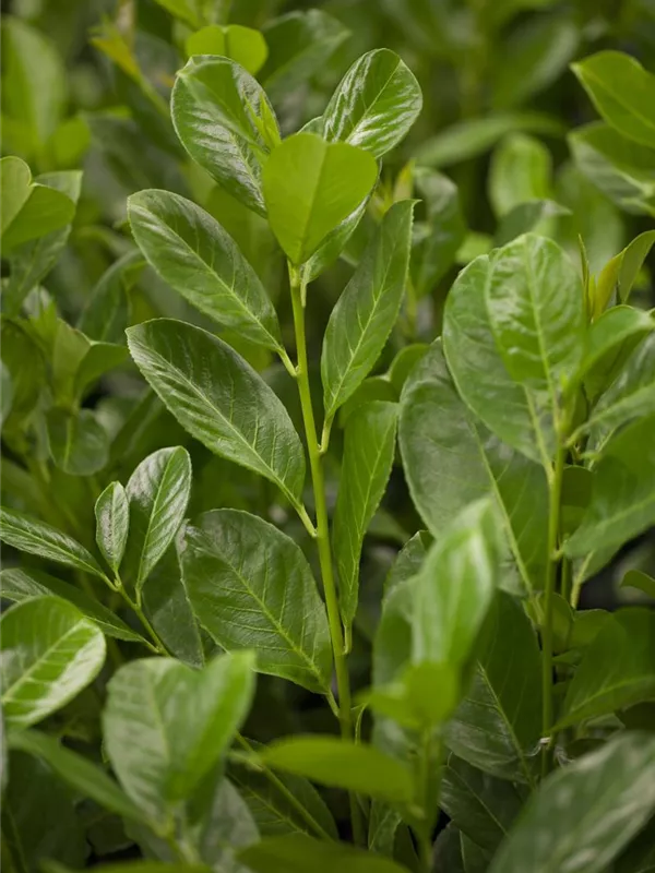 Lorbeerkirsche 'Rotundifolia' ist auch unter diesem Namen bekannt: Kirschlorbeer.