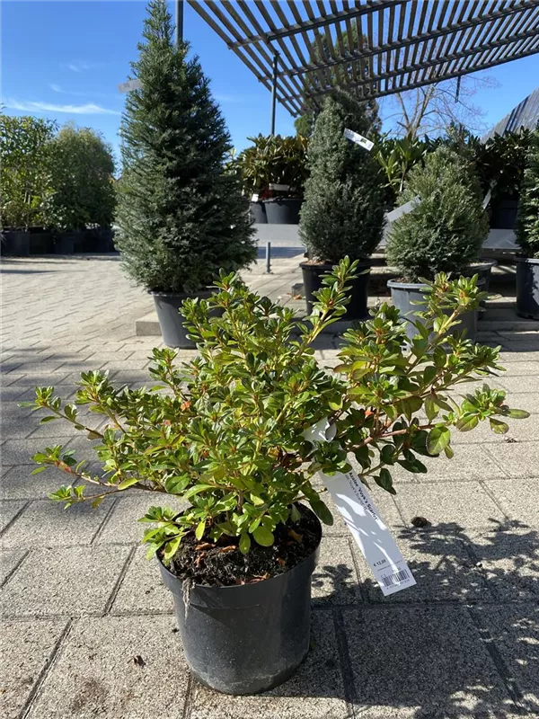 Die Japanische Azalee 'Vuyk´s Scarlet' (Rhododendron obtusum) bringt von Mai bis Juni ein wahres Meer aus scharlachroten Blüten hervor. Dieses aufrecht, gedrungen wachsende Gehölz erreicht gewöhnlich eine Höhe von 0,5 - 1,5 m und eine Breite von 0,5 bis 1,5 m. Ein halbschattiger (bis schattiger) Standort und ein durchlässiger, nährstoffreicher, saurer Boden schaffen optimale Bedingungen für ein gesundes Wachstum. Die Japanische Azalee 'Vuyk´s Scarlet' ist gut frostverträglich.