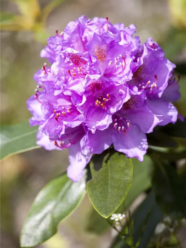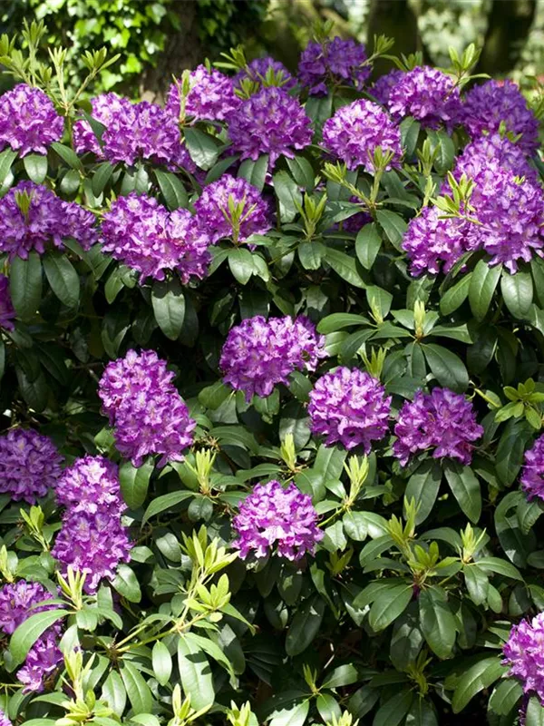 Der Catawba-Rhododendron 'Grandiflorum' (Rhododendron catawbiense) bringt von Anfang Juni bis Ende Juni ein wahres Meer aus lilafarbenen bis gelbroten Zeichnung Blüten hervor. Dieses buschig, dicht wachsende Gehölz erreicht gewöhnlich eine Höhe von 5 - 6 m und eine Breite von 3 bis 4 m. Ein halbschattiger (bis schattiger) Standort und ein humoser, kalkfreier Boden schaffen optimale Bedingungen für ein gesundes Wachstum. Der Catawba-Rhododendron 'Grandiflorum' ist gut frostverträglich.