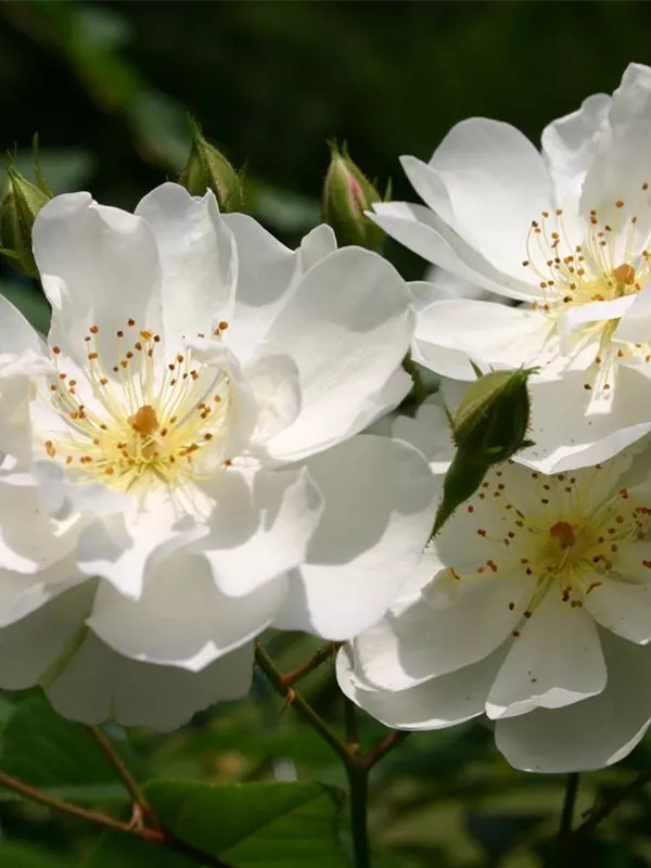 Die Triebe von Rosa 'Bobby James' sind bestachelt.