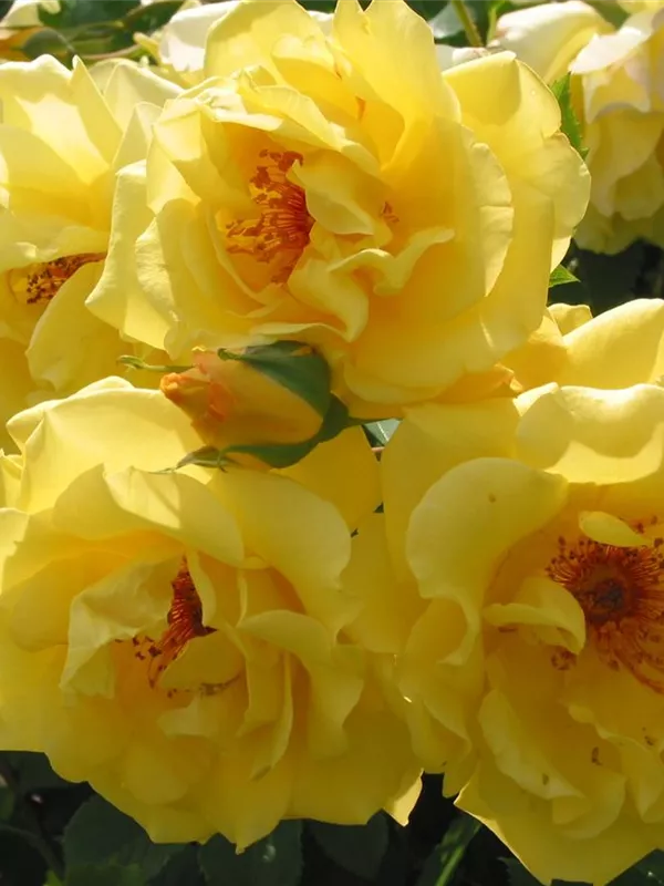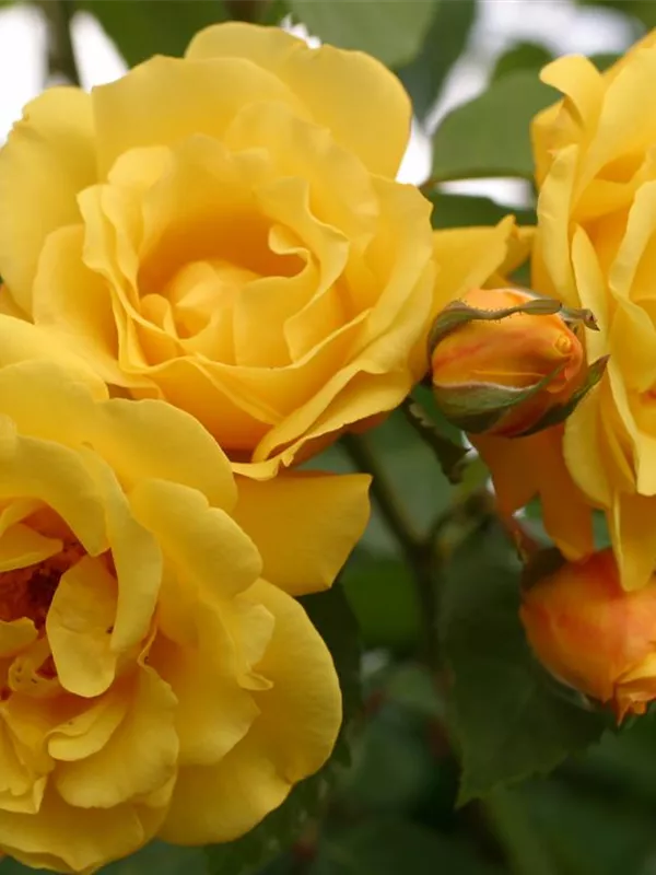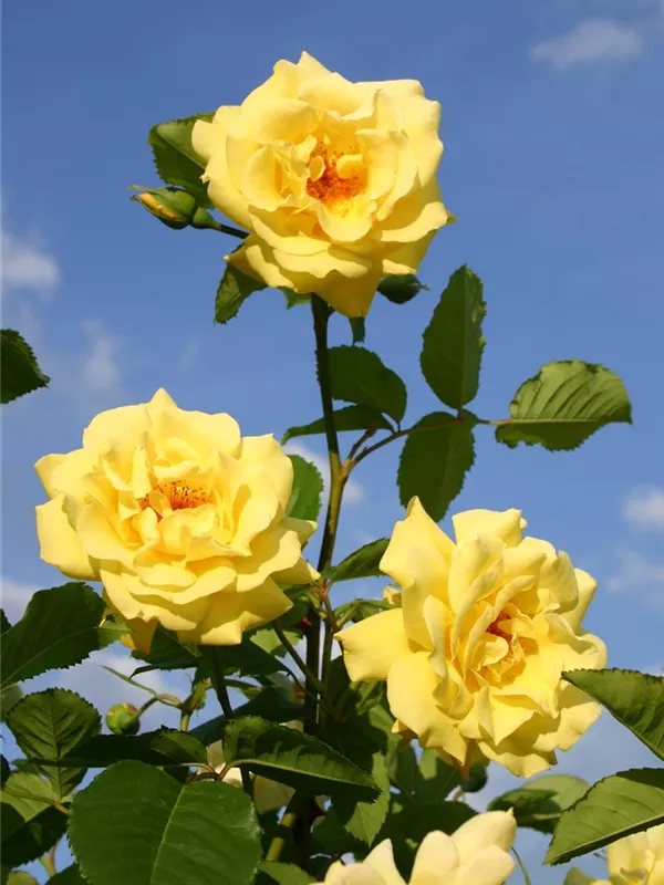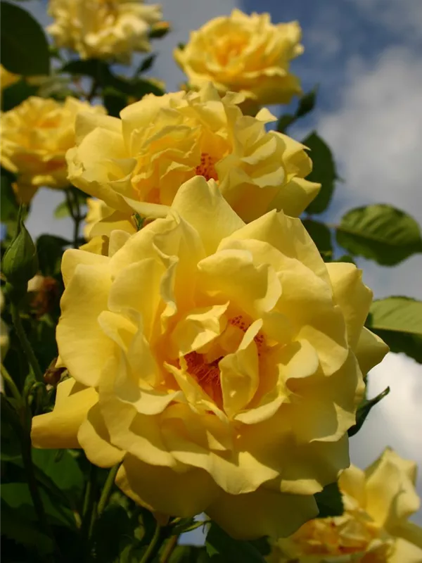 Die Kletterrose 'Golden Gate'® (Rosa) ist eine reichblühende Rose, die im Garten eine besondere Rolle spielt. Die zahlreichen starkgefüllten Blüten sind goldgelb und erscheinen von Juni bis Oktober. Ihr wunderbarer Duft entfaltet sich besonders an sonnigen, warmen Tagen. Mit den richtigen Begleitern an ihrer Seite, kommt die Königin der Blumen besonders gut zur Geltung. Niedrige Stauden, Lavendel und Salbei eignen sich ganz gut für diese Zwecke.