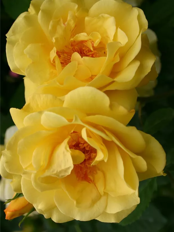 Die goldgelben, schalenförmigen Blüten sind starkgefüllt und erscheinen von Juni bis Oktober. Diese werden etwa 8 - 9 cm groß und sind stark duftend.