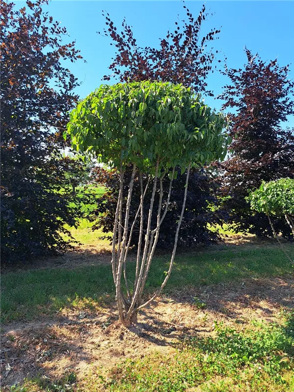 Kornelkirsche ist ein buschig, aufrecht und breit wachsender Großstrauch. Sie erreicht gewöhnlich eine Höhe von 4 - 7 m und wird ca. 4 - 6 m breit. In der Regel wächst sie 20 - 30 cm pro Jahr.