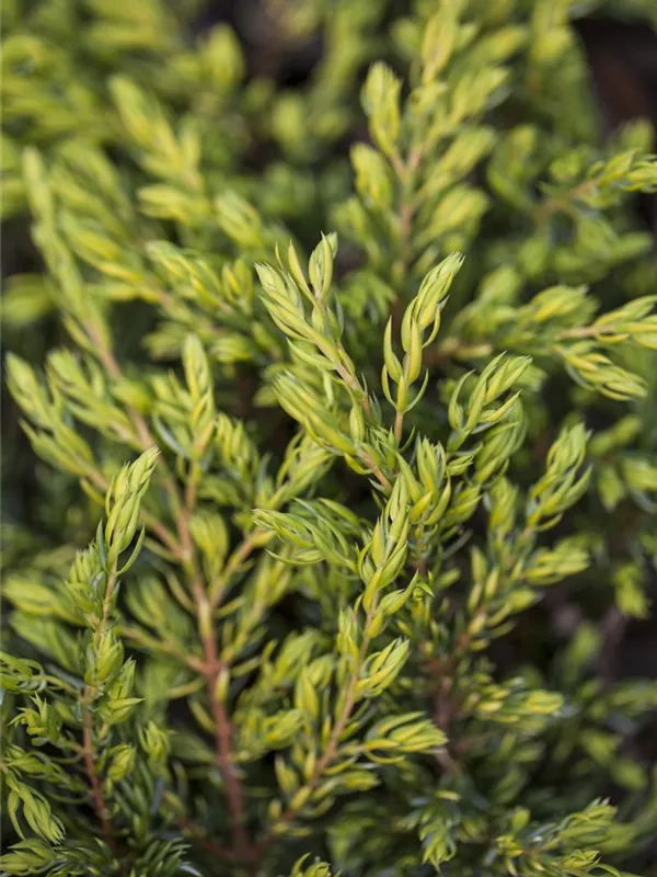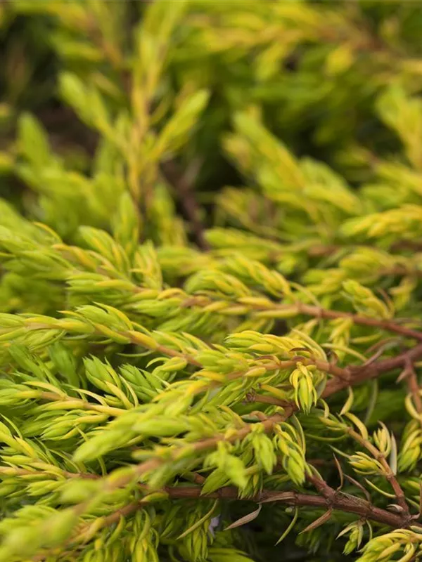 Der Gemeine Wacholder 'Goldschatz' ist immergrün. Seine Nadeln sind blau-grün, grün, stechend. Gelber Austrieb.
