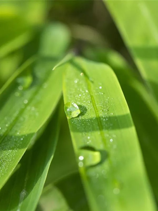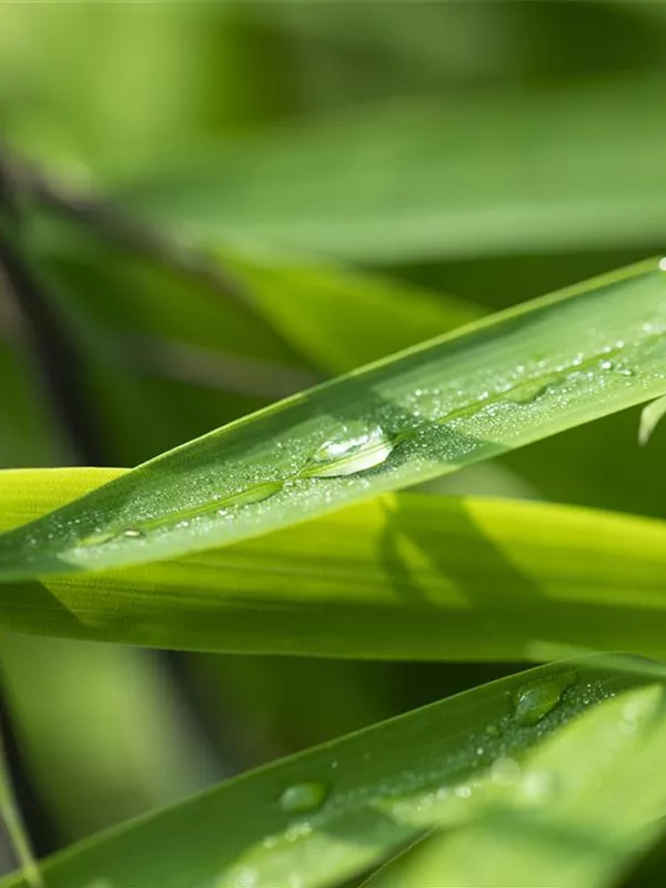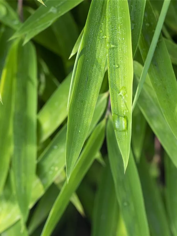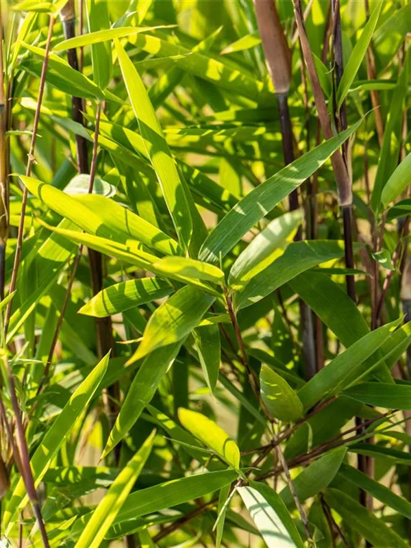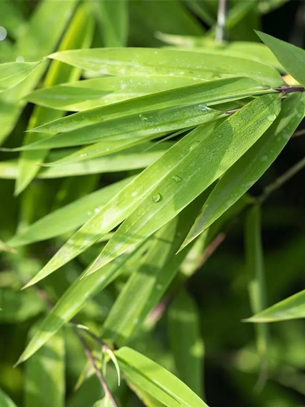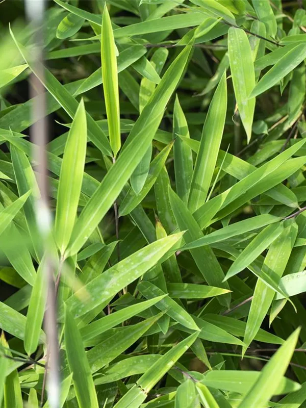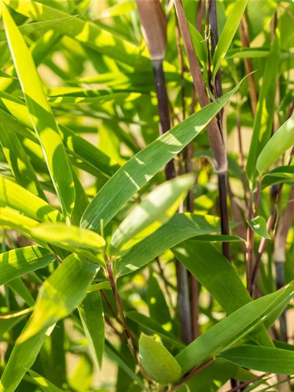 Die immergrünen Blätter des Bambuses 'Black Pearl' sind dunkelgrün, lanzettlich.
