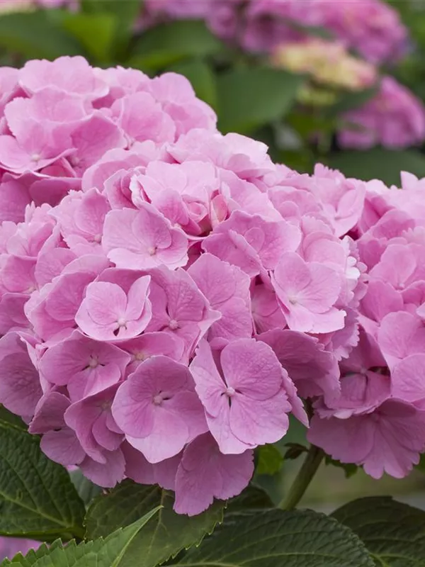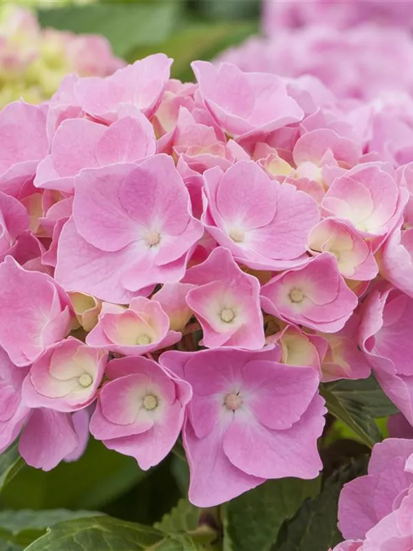 Die sommergrünen Blätter der Bauernhortensie 'Forever & Ever'® sind mittelgrün, eiförmig, gesägt.