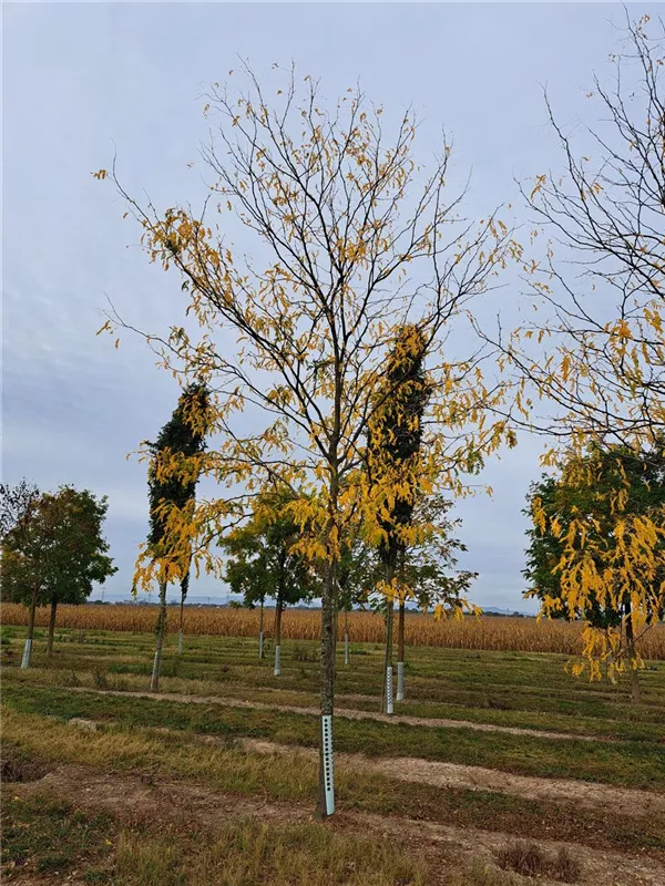 Lederhülsenbaum 'Skyline' ist ein kegelförmig wachsender Baum mit geschlossener Krone. Er erreicht gewöhnlich eine Höhe von 10 - 15 m und wird ca. 5 - 7 m breit. In der Regel wächst er 25 - 30 cm pro Jahr.