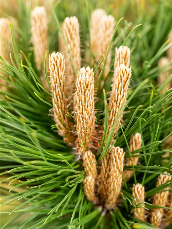 Die Schwarz-Kiefer 'Marie Brégeon'® (Pinus nigra) ist ein Kleinstrauch, welcher kompakt, kugelförmig wächst und gewöhnlich eine Höhe von ca. 1 m und eine Breite von ca. 1,5 m erreicht. Ihre nadelförmigen Blätter haben eine dunkelgrüne Färbung. Dekorative braune Zapfen zieren Pinus nigra 'Marie Brégeon'® ab September. Dieses Gehölz ist gut frostverträglich.Sie bevorzugt durchlässigen, kalkhaltigen, sandigen Boden in sonniger Lage.