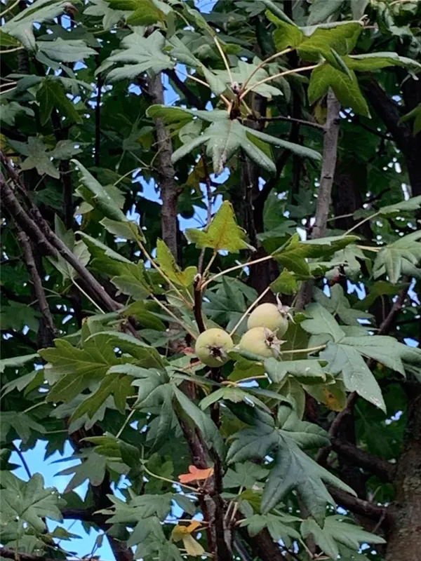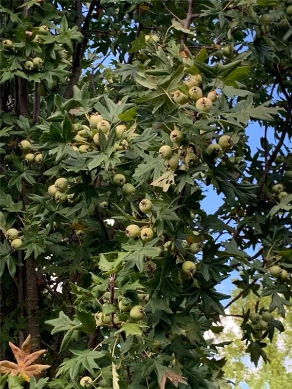 Besonders dekorativ sind die roten Früchte von Malus trilobata. Diese erscheinen ab August.