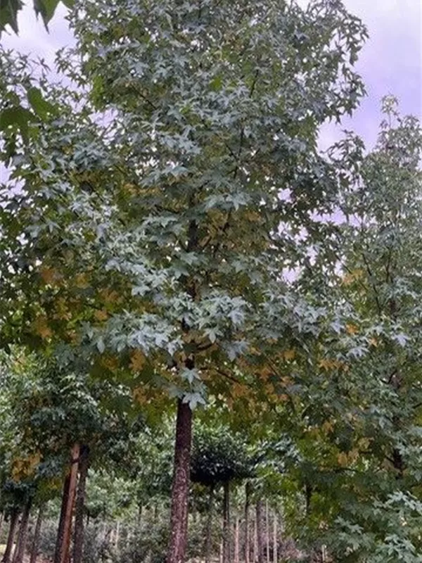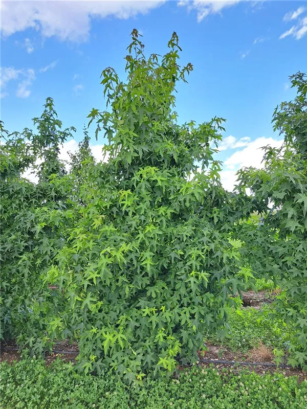 Amerikanischer Amberbaum ist ein kegelförmig und aufrecht wachsender Baum mit lichtdurchlässiger Krone. Er erreicht gewöhnlich eine Höhe von 10 - 30 m und wird ca. 6 - 12 m breit. In der Regel wächst er 30 - 35 cm pro Jahr.