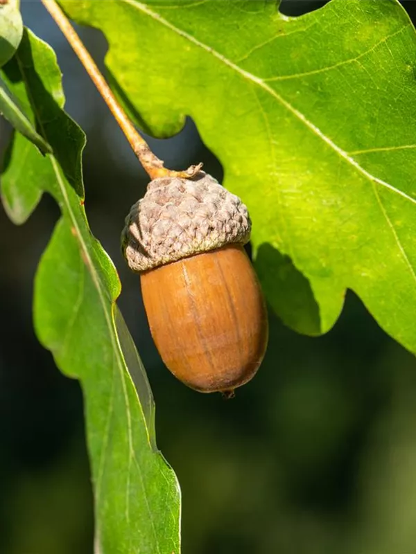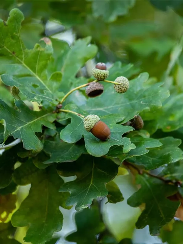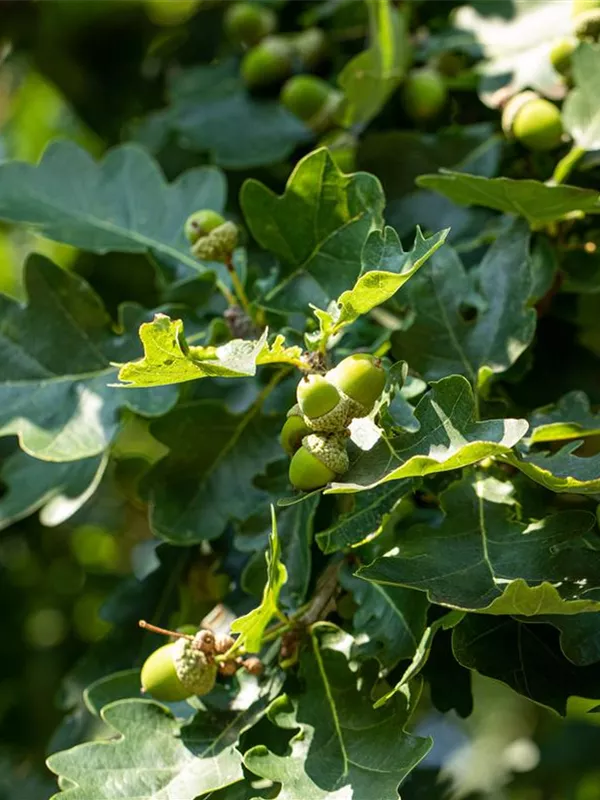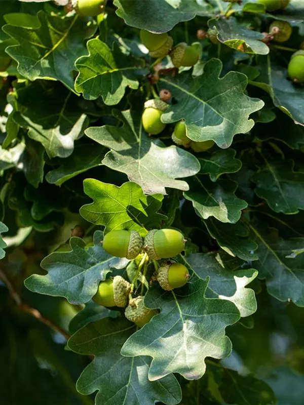 Besonders dekorativ sind die hellgrünen Früchte von Quercus robur. Diese erscheinen ab September und sind klein.