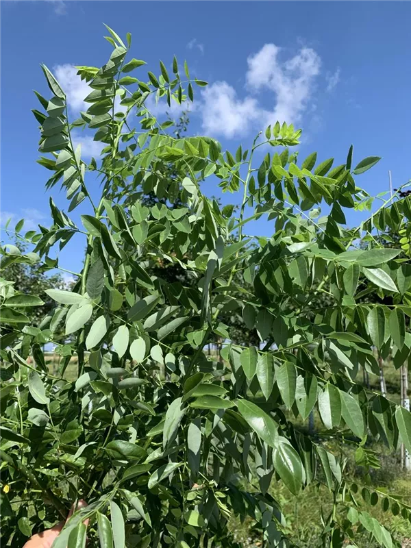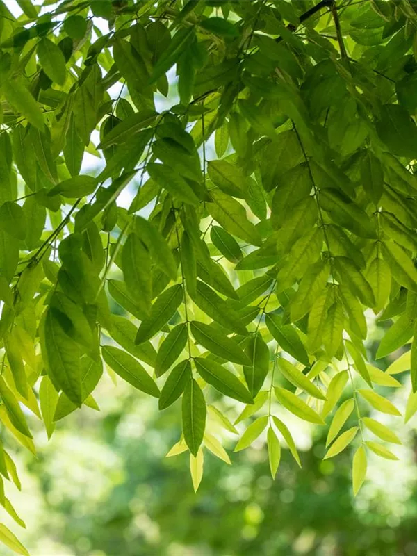 Die sommergrünen Blätter des Schnurbaums sind mittelgrün, gefiedert, wechselständig. Diese sind etwa 20 - 25 cm groß. Schnurbaum zeigt sich leuchtend gelb im Herbst. Lange haftend.