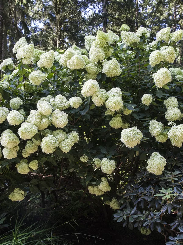 Rispenhortensie 'Phantom' ist ein aufrecht wachsender Strauch. Sie erreicht gewöhnlich eine Höhe von 2 - 2,5 m und wird ca. 2 - 2,5 m breit.