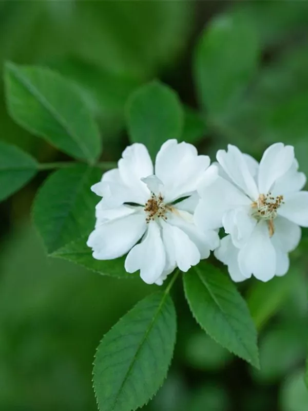 Die Vielblütige Rose (Rosa) ist eine reichblühende Rose, die im Garten aber auch auf Balkon oder Terrasse eine besondere Rolle spielt. Die zahlreichen Blüten sind weiß und erscheinen von Juni bis Juli. Ihr intensiver Duft entfaltet sich besonders an sonnigen, warmen Tagen. Zudem haben ihre runden, roten Früchte einen besonderen Zierwert, wenn sie ab September reif sind. Mit dem ausladenden und breiten Wuchs wird dieser Strauch bis zu 3 m hoch und 2,5 m breit.