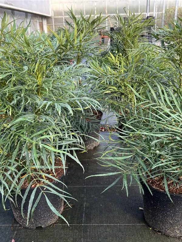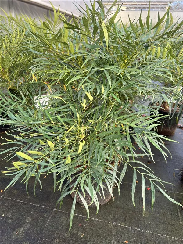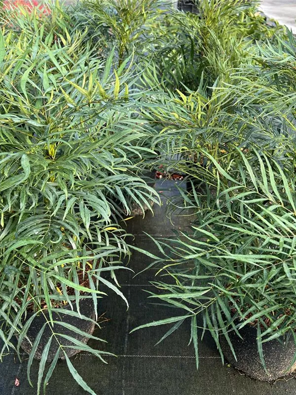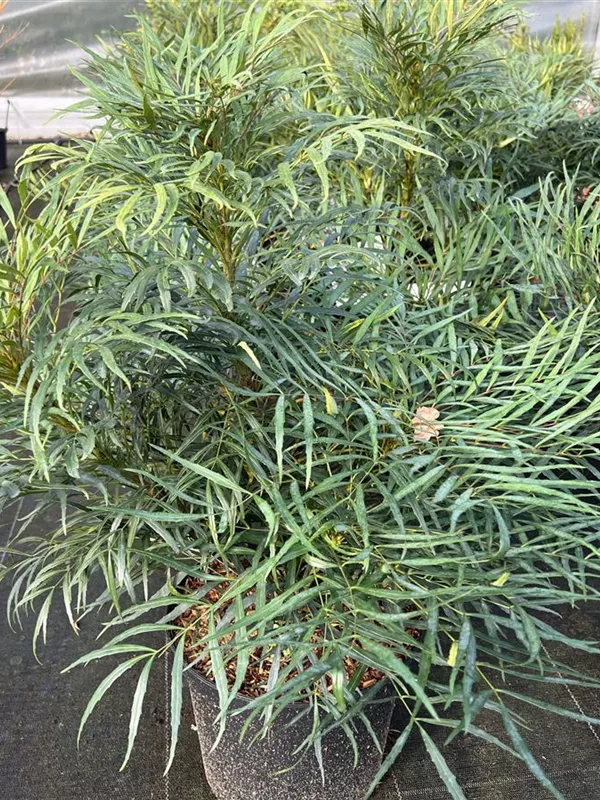 Hoher Blattschmuckwert. Die immergrünen Blätter der Mahonie 'Soft Caress'® sind mittelgrün, gefiedert.