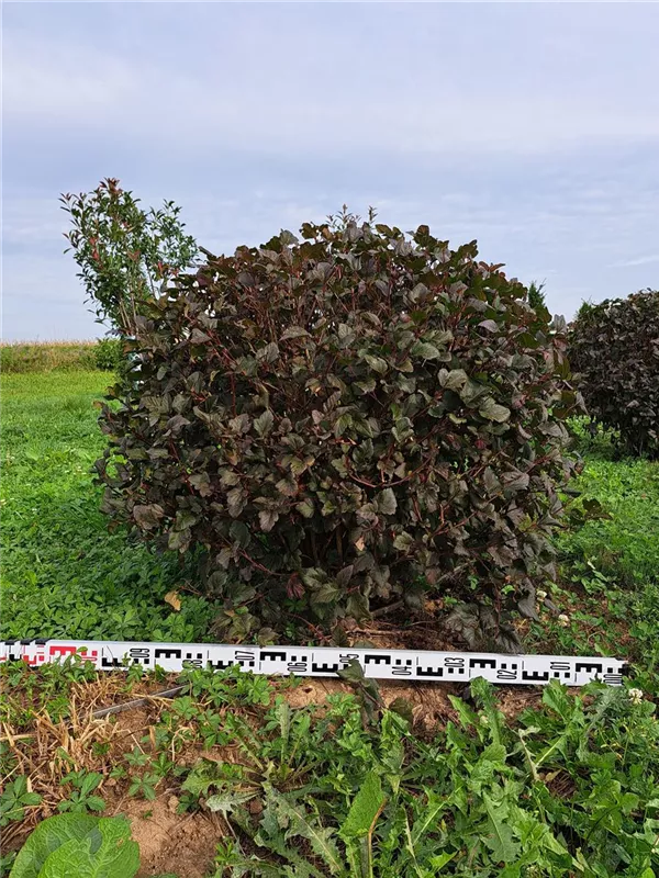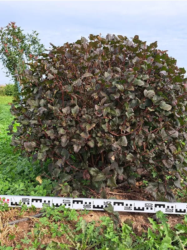 Die Fasanenspiere 'Diabolo'® (Physocarpus opulifolius) ist ein buschiger, aufrechter, Strauch mit dekorativen sommergrünen, eiförmigen, dunkelroten Blättern.