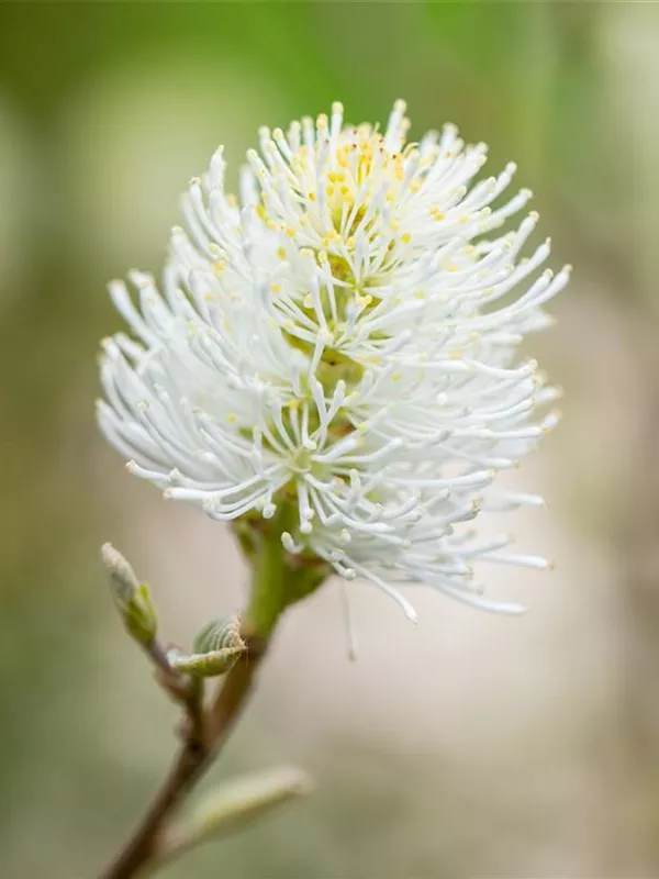 Die weißen Blüten des Großen Federbuschstrauch erscheinen in Ähren im Mai. Diese werden etwa 2 - 5 cm groß und sind stark duftend.