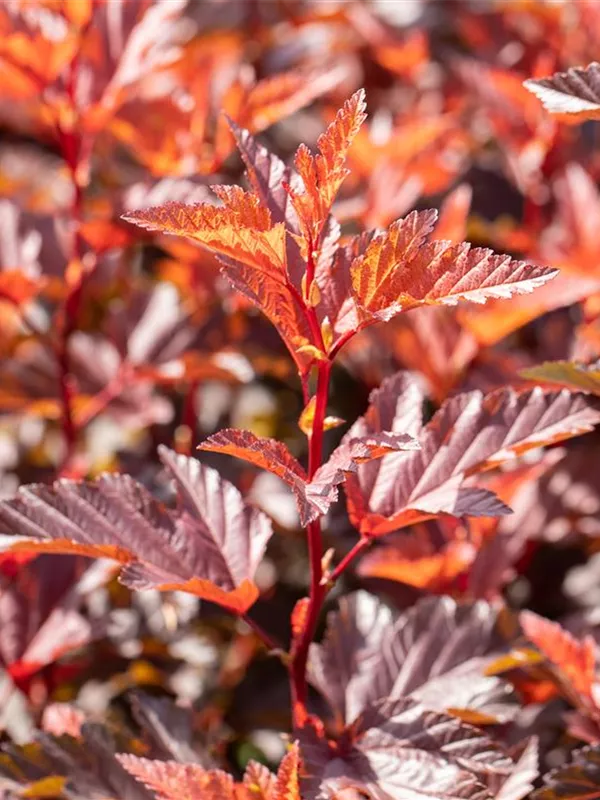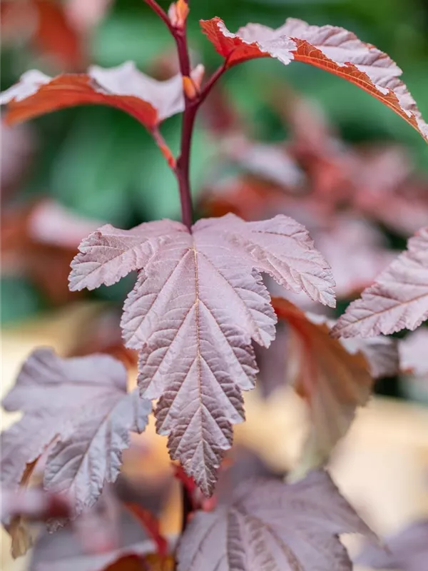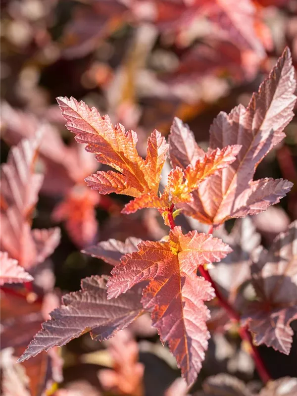 Die Fasanenspiere 'Little Angel'® (Physocarpus opulifolius) ist ein buschiger, aufrechter, sommergrüner Großstrauch mit dekorativen, eiförmigen, roten Blättern. An einem sonnigen bis halbschattigen Standort mit durchlässigem Boden erreicht sie gewöhnlich eine Höhe von ca. 2 m und wird ca. 2 m breit.