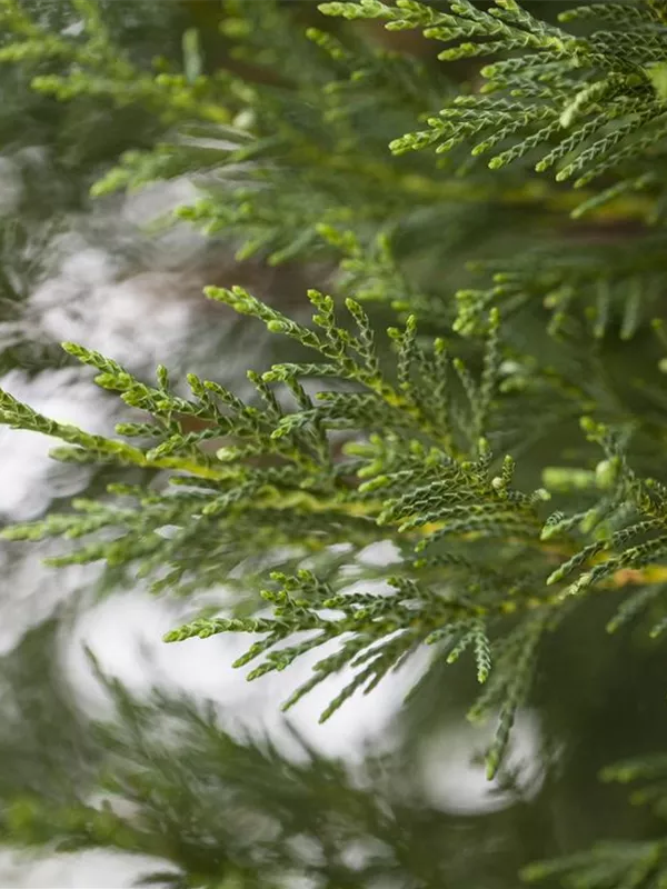 Die Leylandzypresse ist immergrün. Ihre Nadeln sind dunkelgrün, schuppenförmig.