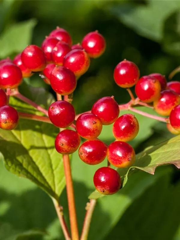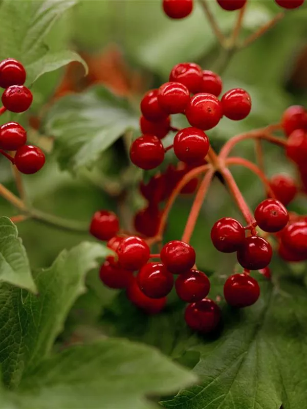 Besonders dekorativ sind die roten Steinfrüchte von Viburnum opulus. Diese erscheinen ab September.Haften sehr lange.