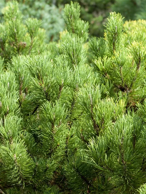 Berg-Kiefer 'Carsten's Wintergold' ist auch unter diesem Namen bekannt: Latschenkiefer, Lege-Föhre oder Krummholz-Kiefer