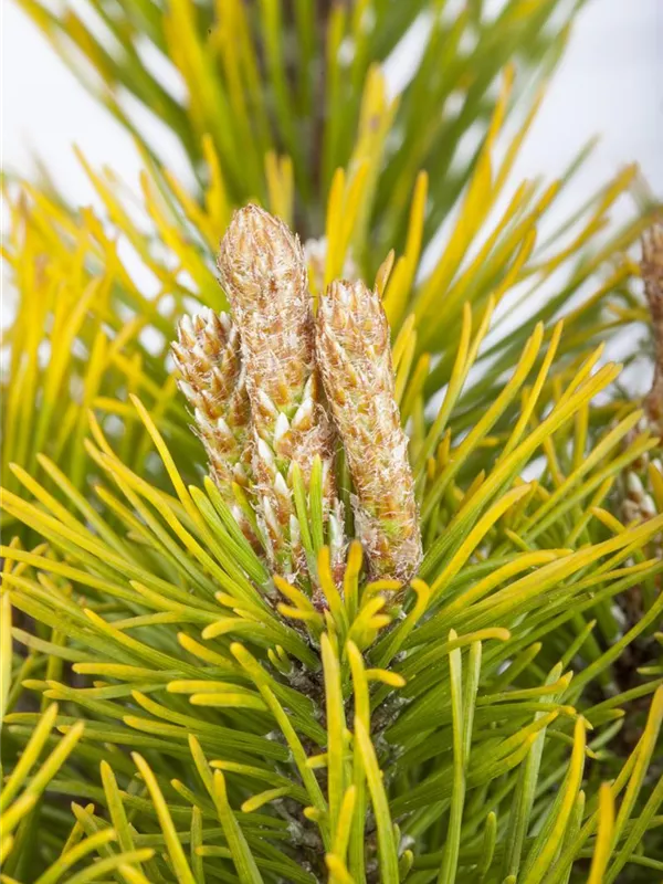 Sehr dekorativ. Die Berg-Kiefer 'Carsten's Wintergold' ist immergrün. Ihre Nadeln sind mittelgrün. Hellgelber Austrieb. Mit seinem goldgelben laub setzt sie schöne Akzente im Winter.