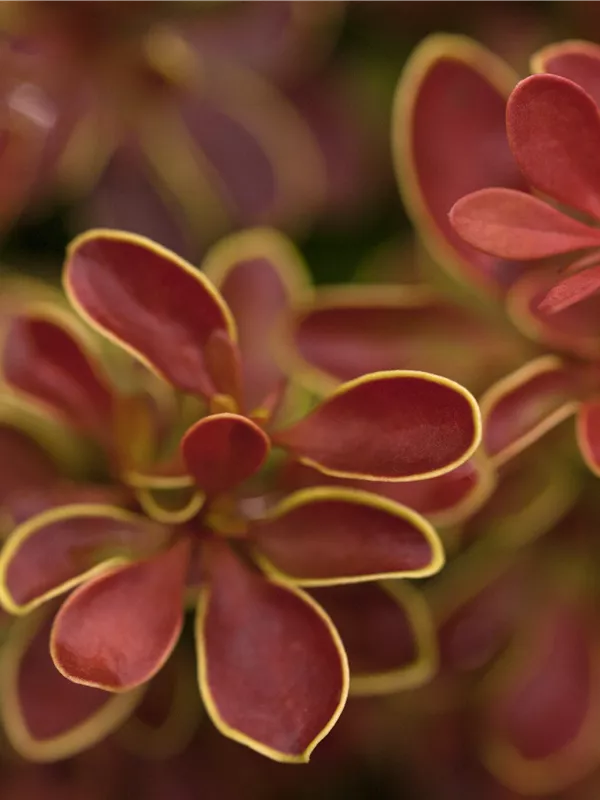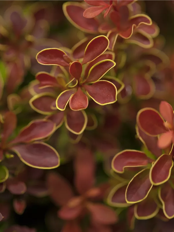 Die Berberitze 'Admiration'® (Berberis thunbergii) ist ein dichter, überhängender, verzweigter, kompakter Strauch mit dekorativen Früchten, die sehr lange haften. Zudem trägt die Berberitze 'Admiration'®, eiförmige, orange-rote Blätter. An einem sonnigen bis halbschattigen Standort mit durchlässigem, humosem, saurem Boden erreicht sie gewöhnlich eine Höhe von ca. 60 cm und wird ca. 30 cm breit.